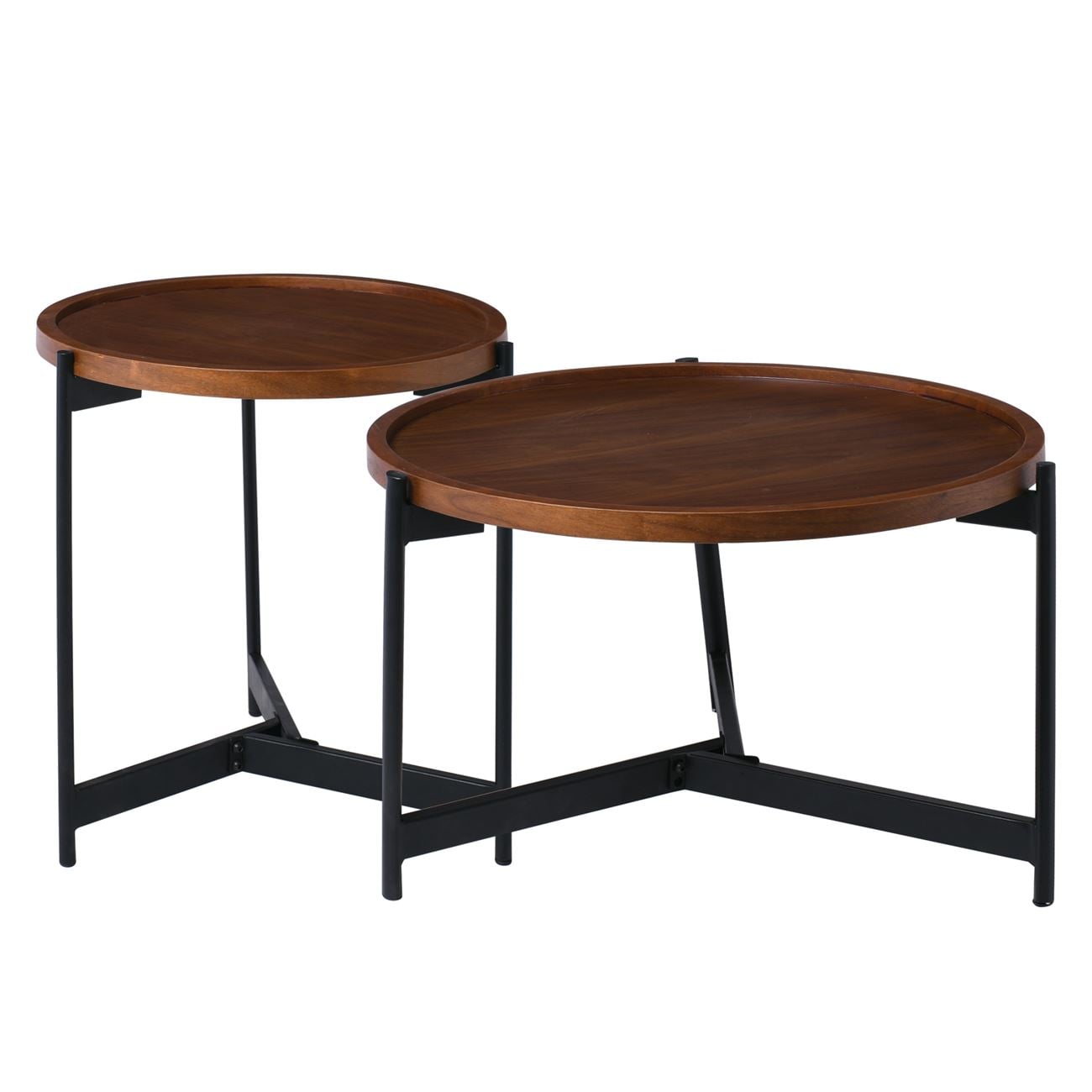 Σετ 2 βοηθητικά τραπεζάκια σαλονιού μεταλλικό μαύρο, σε απόχρωση Καρυδί.