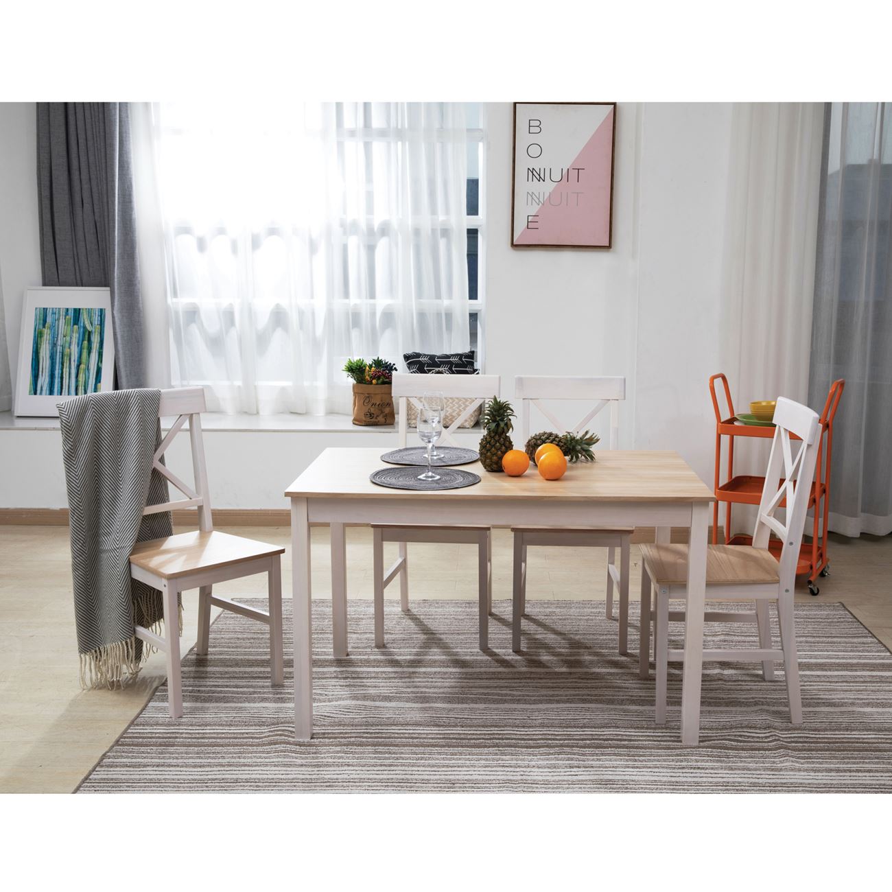 DAILY Set Τραπεζαρία Ξύλινη Σαλονιού - Κουζίνας: Τραπέζι + 4 Καρέκλες / Άσπρο - Φυσικό Ε-00020953 Ε783,2S