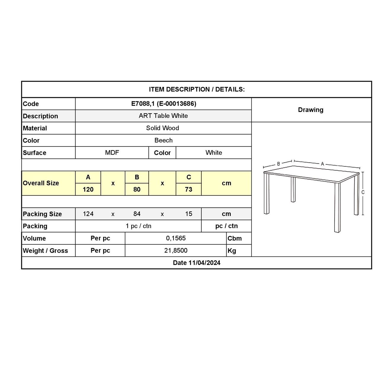ART Tραπέζι Τραπεζαρίας Κουζίνας - Άσπρο MDF Ε-00013686 Ε7088,1