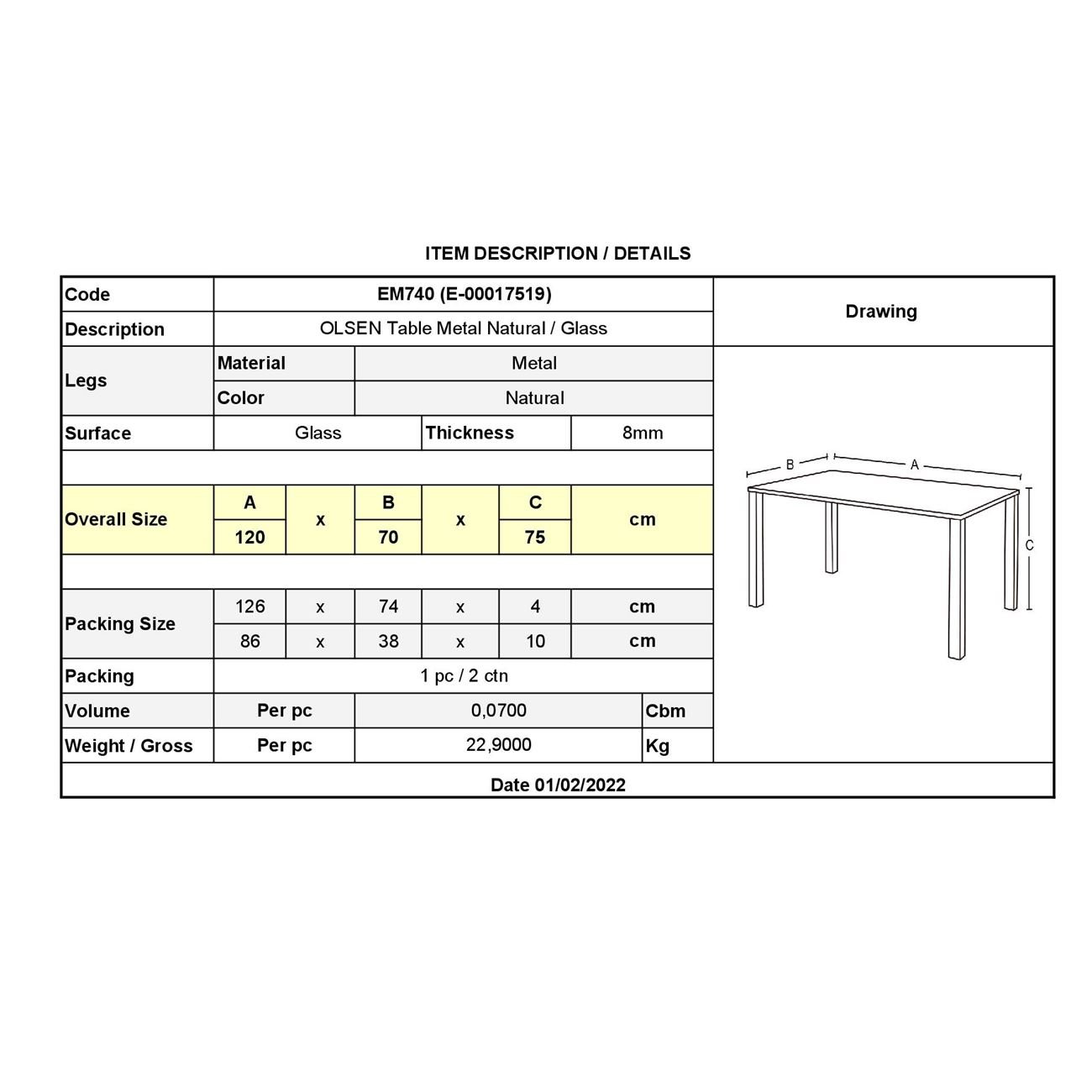 OLSEN Τραπέζι Τραπεζαρίας Κουζίνας - Μέταλλο Βαφή Φυσικό - Γυαλί Clear Ε-00017519 ΕΜ740
