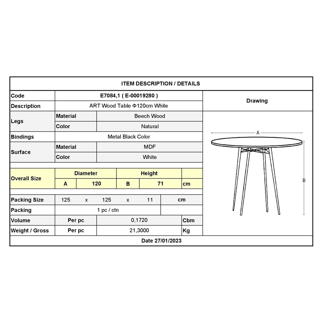 ART Wood Τραπέζι Τραπεζαρίας Κουζίνας, Πόδια Οξιά Φυσικό, Επιφάνεια MDF Άσπρο Ε-00019280 Ε7084,1