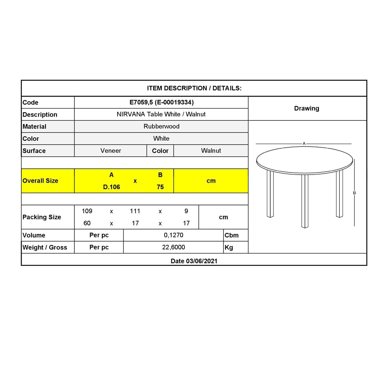 NIRVANA Τραπέζι Τραπεζαρίας Κουζίνας, Άσπρο - Καρυδί Ε-00019334 Ε7059,5