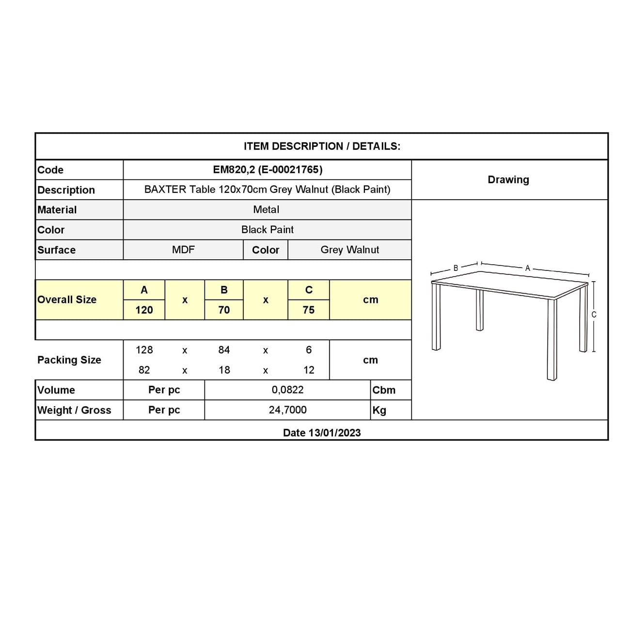 Διαθέσιμο από 4-10 ημέρεςΤραπέζι μεταλλικό μαύρο, με επιφάνεια σε απόχρωση Grey Walnut.