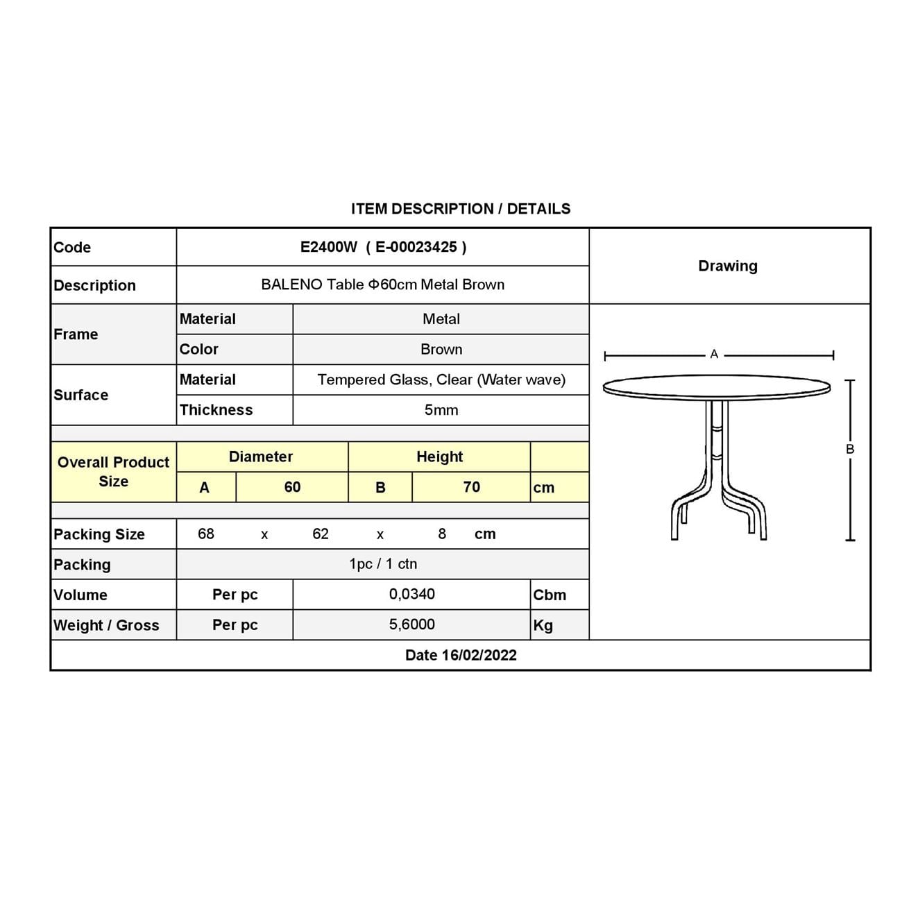Διαθέσιμο από 4-10 ημέρεςBALENO Τραπέζι Στρογγυλό Εξωτερικού Χώρου / Κήπου / Βεράντας