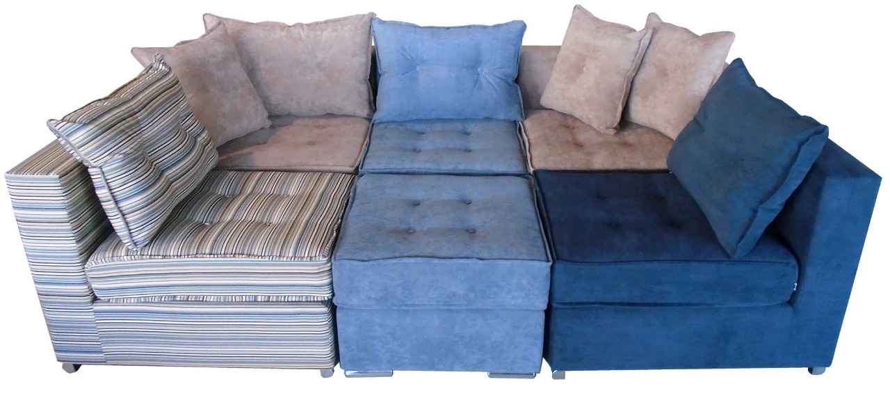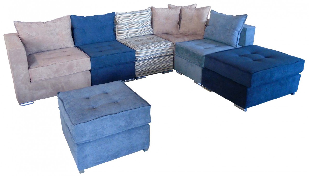 Σύστημα καναπέ αποτελούμενο από επτά (7) τεμάχια, με δυνατότητα πολλαπλής διάταξης και τοποθέτησης στο χώρο σας. Επιπλέον, υπάρχει η δυνατότητα διάταξης για χρήση ως κρεβάτι. Μαξιλάρια, διακοσμημένα με ρέλια και τραβήγματα.