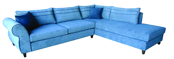 Γωνιακός καναπές κλασικού τύπου, με διακοσμητικές λεπτομέρειες στο μπράτσο και τα μαξιλάρια πλάτης.