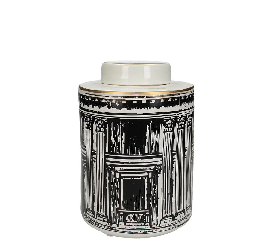 Βάζο με καπάκι με ρωμαικό print, μαύρο/λευκό 23cm XET-5984