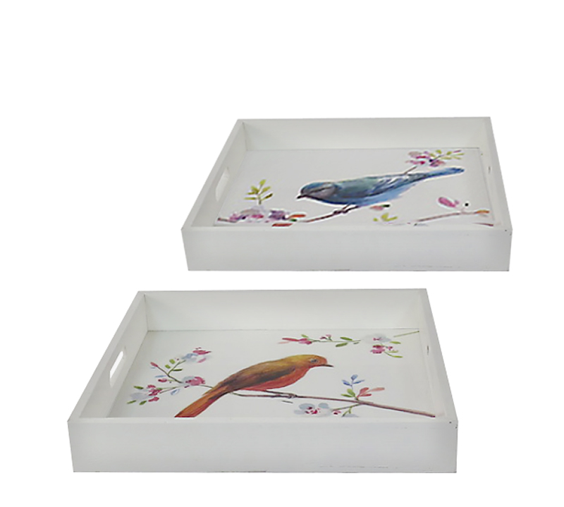 Ξύλινοι δίσκοι Σ/2, με ζωγραφιστά πουλάκια, 41/31cm ID251