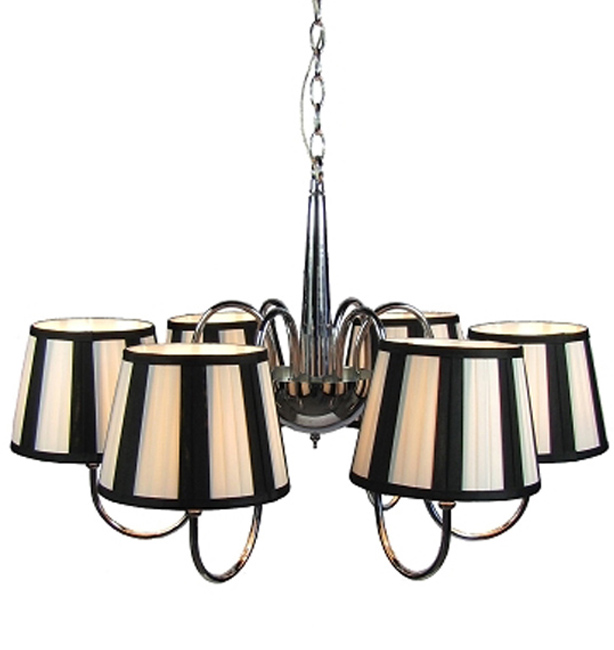 Πολυέλαιος Νίκελ με 6 Φώτα, Καπέλο Λευκό & Μαύρο SD684