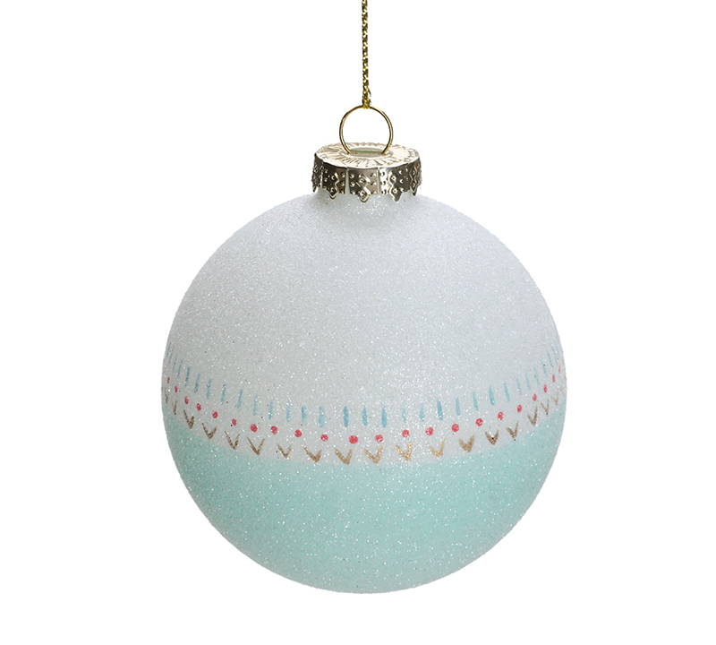Γυάλινη ζαχαρωτή μπάλλα λευκό/γαλάζιο,8cm BL378
