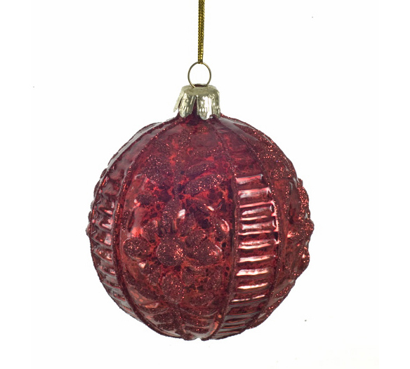 Χριστουγεννιάτικη Μπάλα Κόκκινη Ανάγλυφα σχέδια 8cm KA785