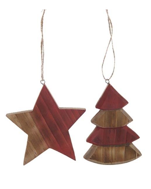 Χριστουγεννιάτικο Στολίδι Ξύλινο Ρουστικ Αστέρι & Χριστουγεννιάτικο Δέντρο 18cm XM274