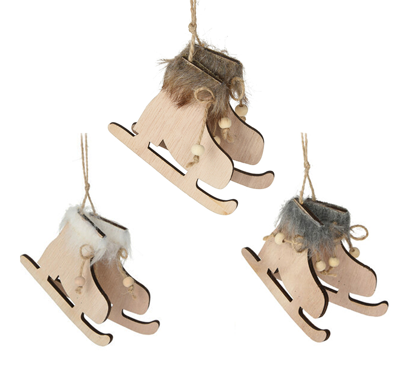 Στολίδι ξύλινα παγοπέδιλα με γούνα 3χρμ.,9.5cm XM382