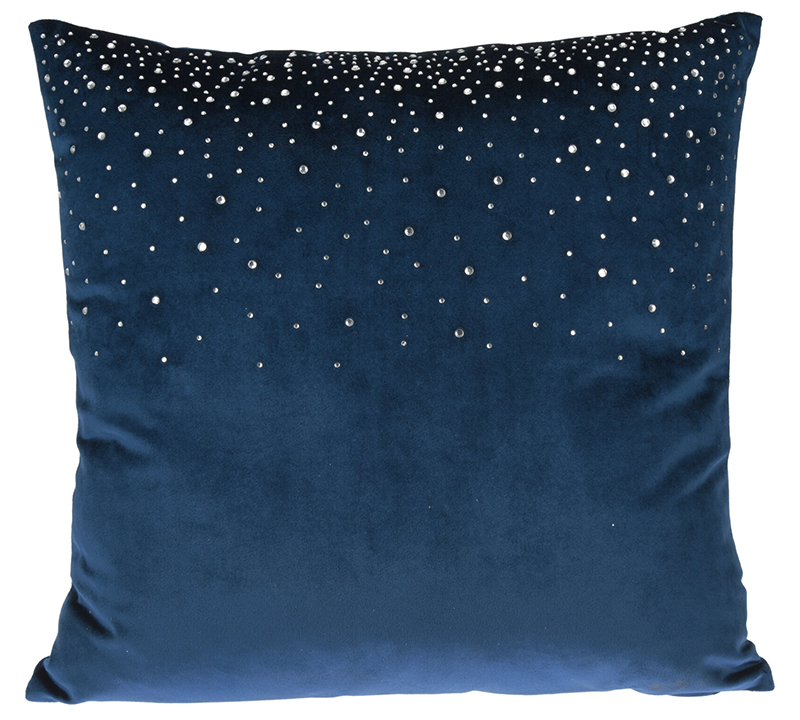 Μαξιλάρι βελούδο με διαμαντάκια μπλε royal,45x45cm MH426