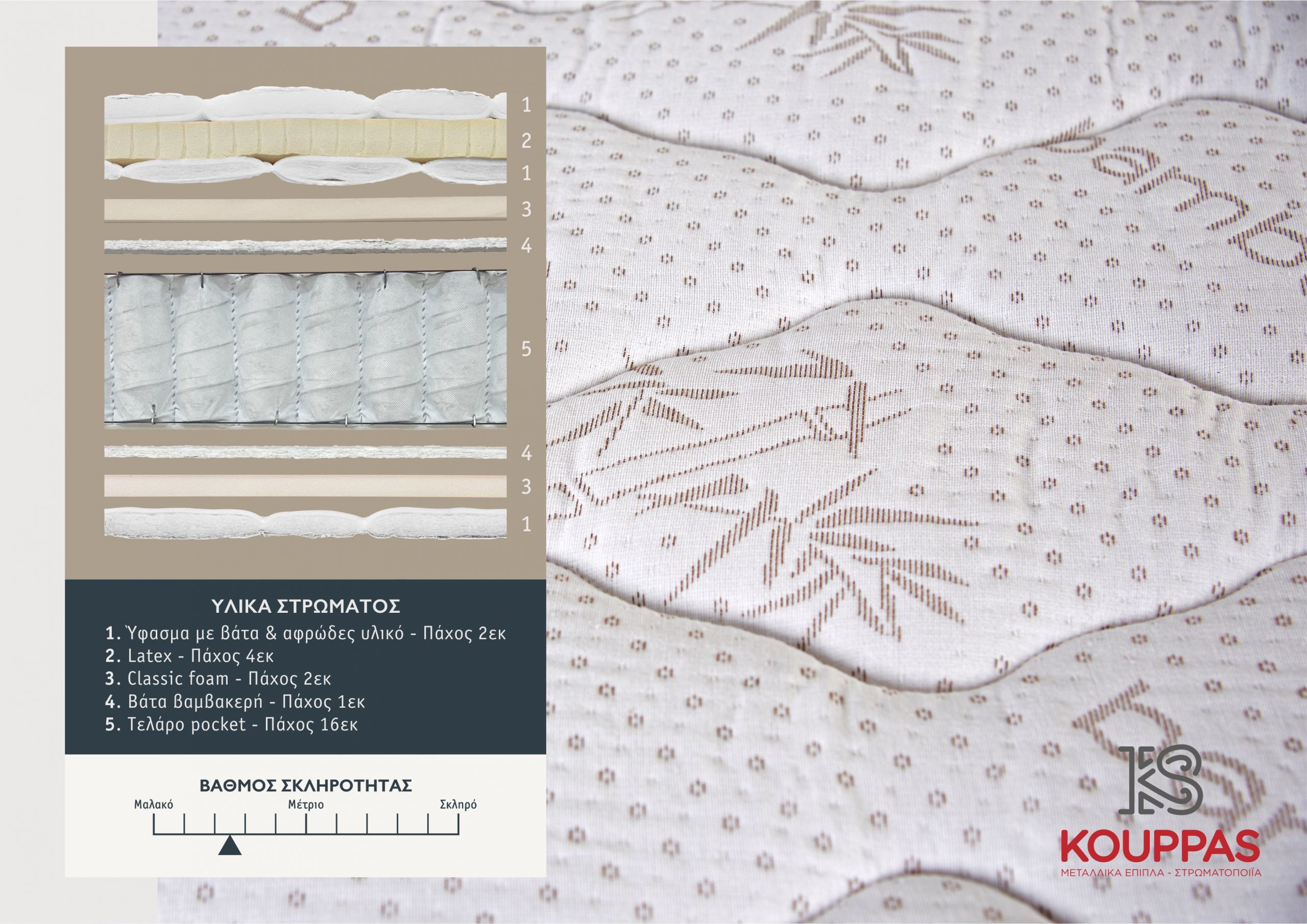 Βαμβακερή βάτα και ενσωματωμένο ανώστρωμα απο αφρώδες υλικό εξαιρετικής αντοχής, που προάγει τη διατήρηση της ομοιομορφίας του στρώματος και συμβάλει στην ανάδειξη της ανατομικης του συμπεριφοράς.