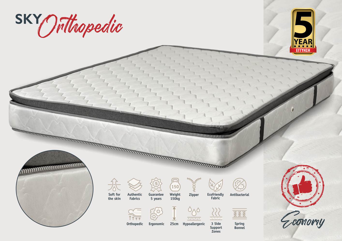 Στρώμα με ανώστρωμα Sky Orthopedic - Economy 90x190x25cm