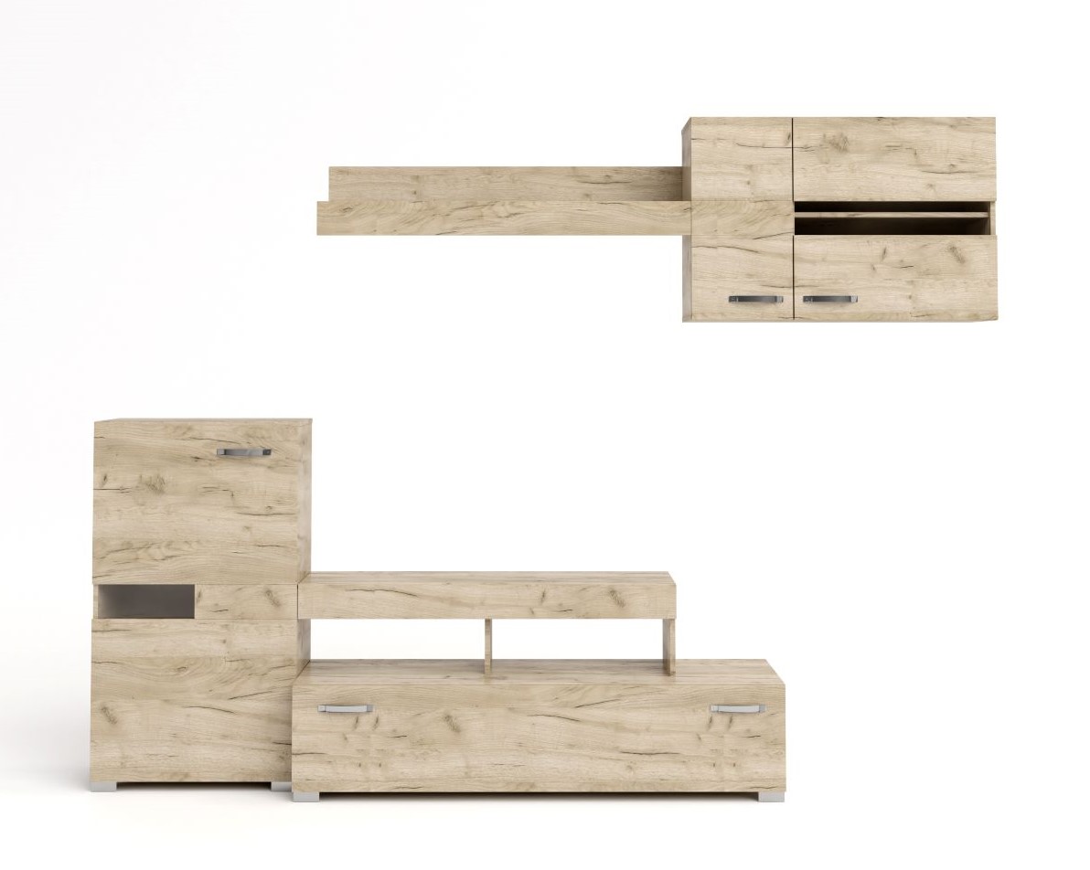 Σύνθεση σαλονιού Komo - Grey Craft Oak (200x40/30x180)