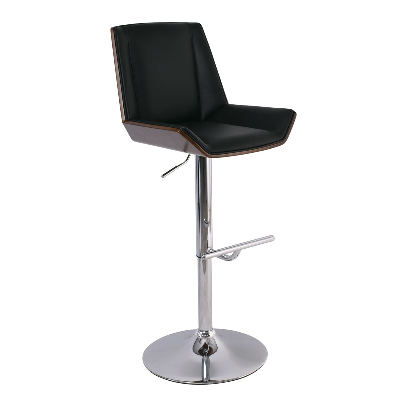 NUMAN Σκαμπό BAR με Πλάτη, Χρώμιο, Καρυδί - ΡU Μαύρο, Ρύθμιση Ύψους, Περιστρεφόμενο Ε-00021095 ΕΜ104,1