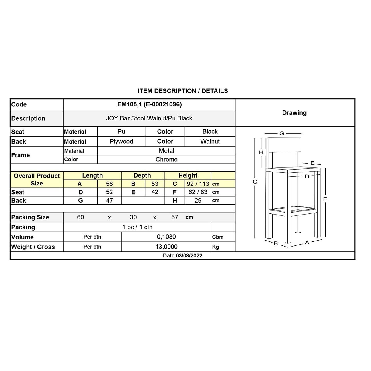 • Είδος: Σκαμπό Bar