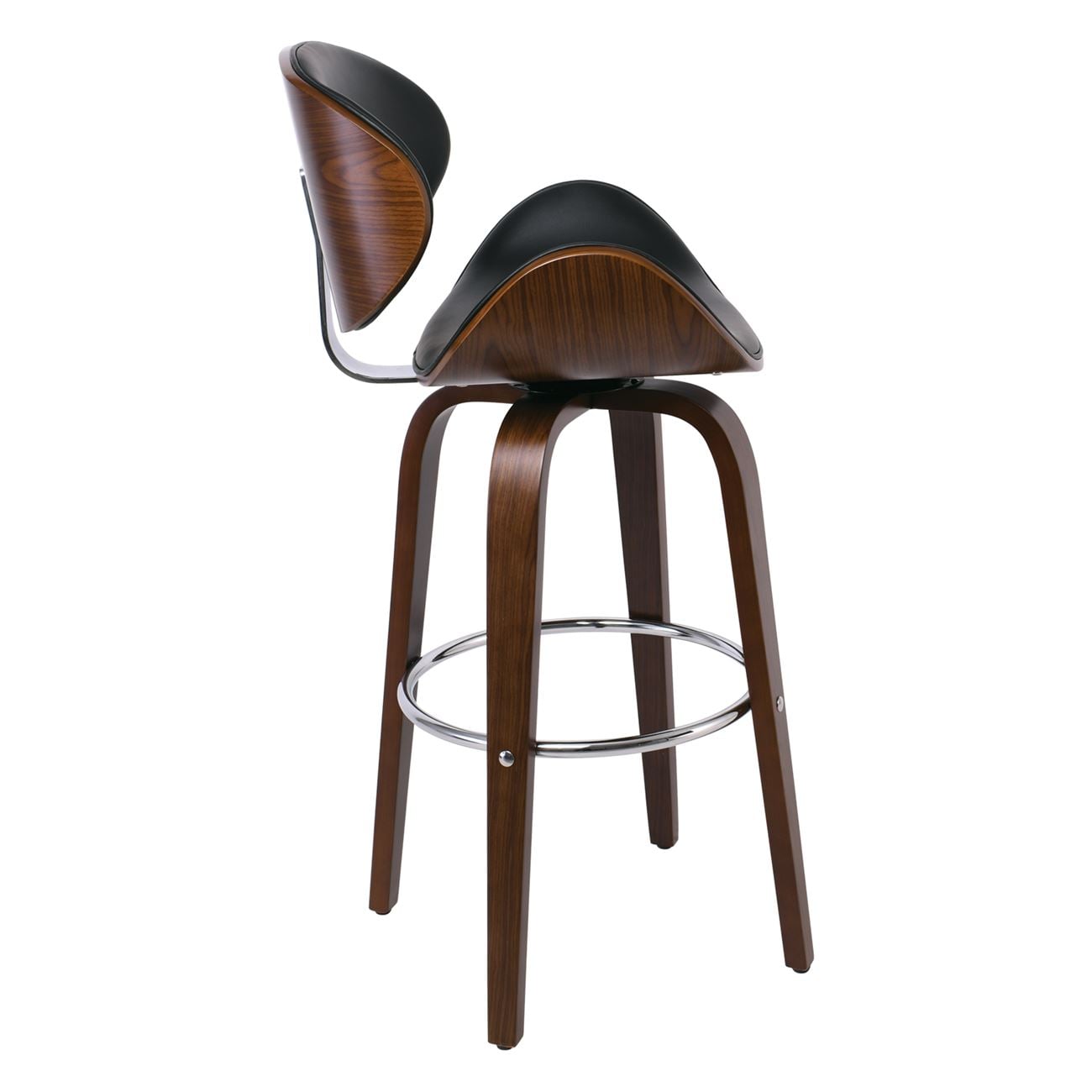 GOMEZ Σκαμπό BAR με Πλάτη, Απόχρωση Καρυδί, PU Μαύρο Περιστρεφόμενο Ε-00021100 Ε510,1