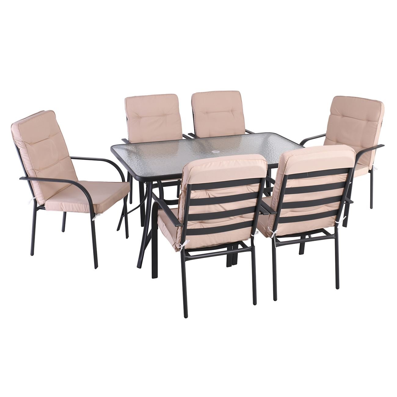 ASTOR Set Τραπεζαρία Κήπου: Τραπέζι + 6 Πολυθρόνες Μέταλλο Ανθρακί, Γυαλί, Μαξιλάρι Μπεζ Ε-00016321 Ε5151,S1