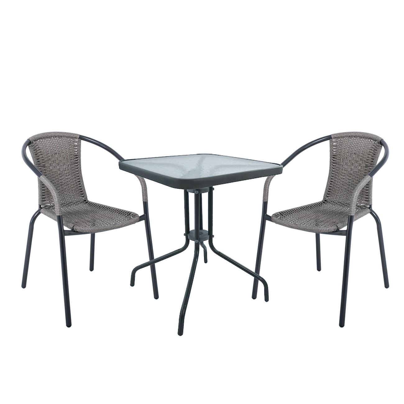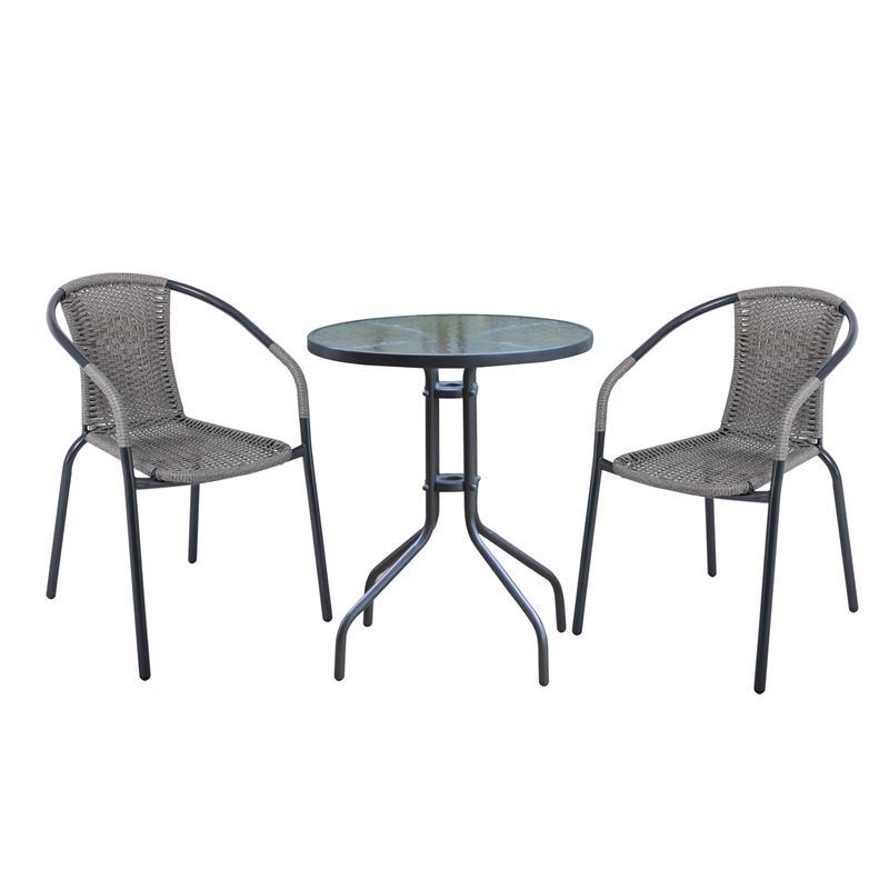 BALENO Set Κήπου - Βεράντας: Τραπέζι + 2 Πολυθρόνες Μέταλλο Γκρι - Wicker Mixed Grey Ε-00022560 Ε240,10